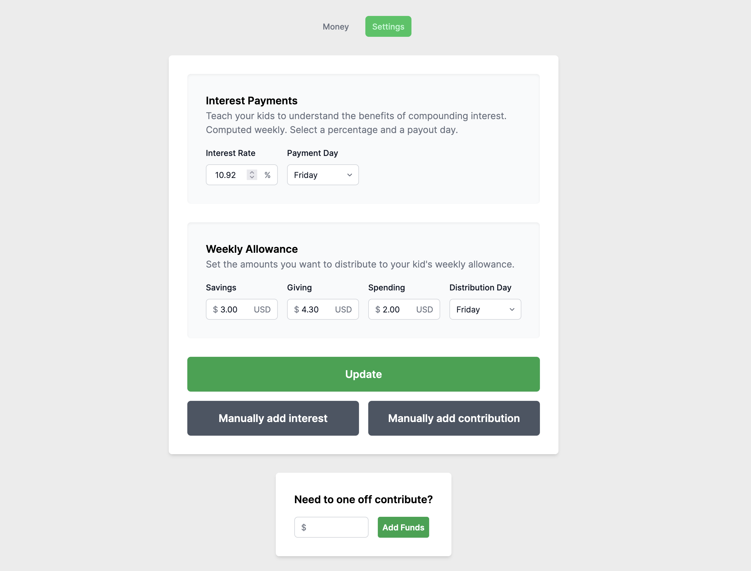 Manage your kids allowance with automated distributions and compounding interest. All with a double-entry accounting system.